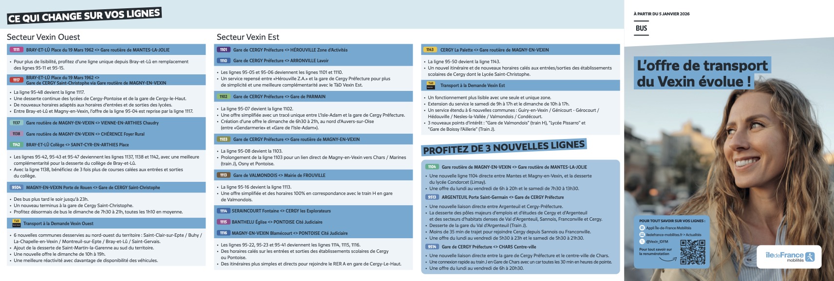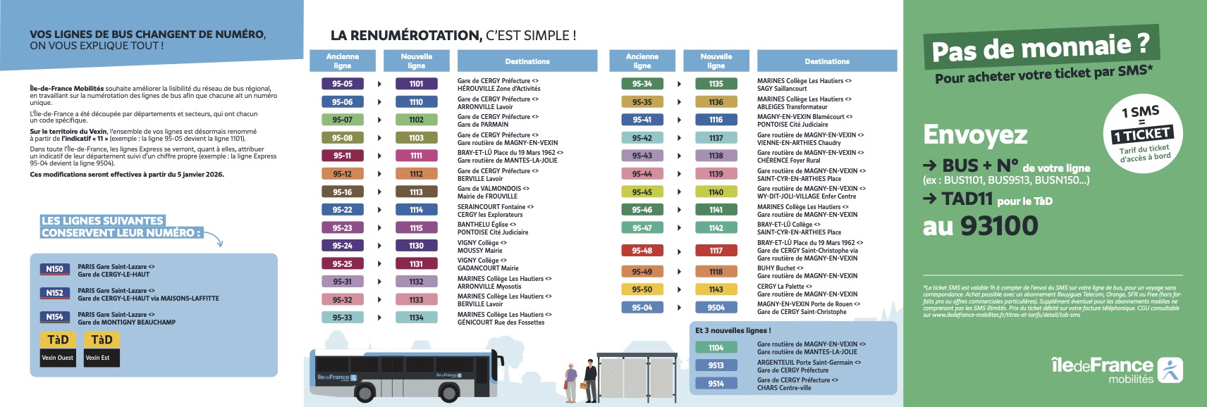 À partir du 5 janvier 2026, la numérotation des bus sillonnant les routes du Vexin va changer pour une meilleure lisibilité au niveau régional.