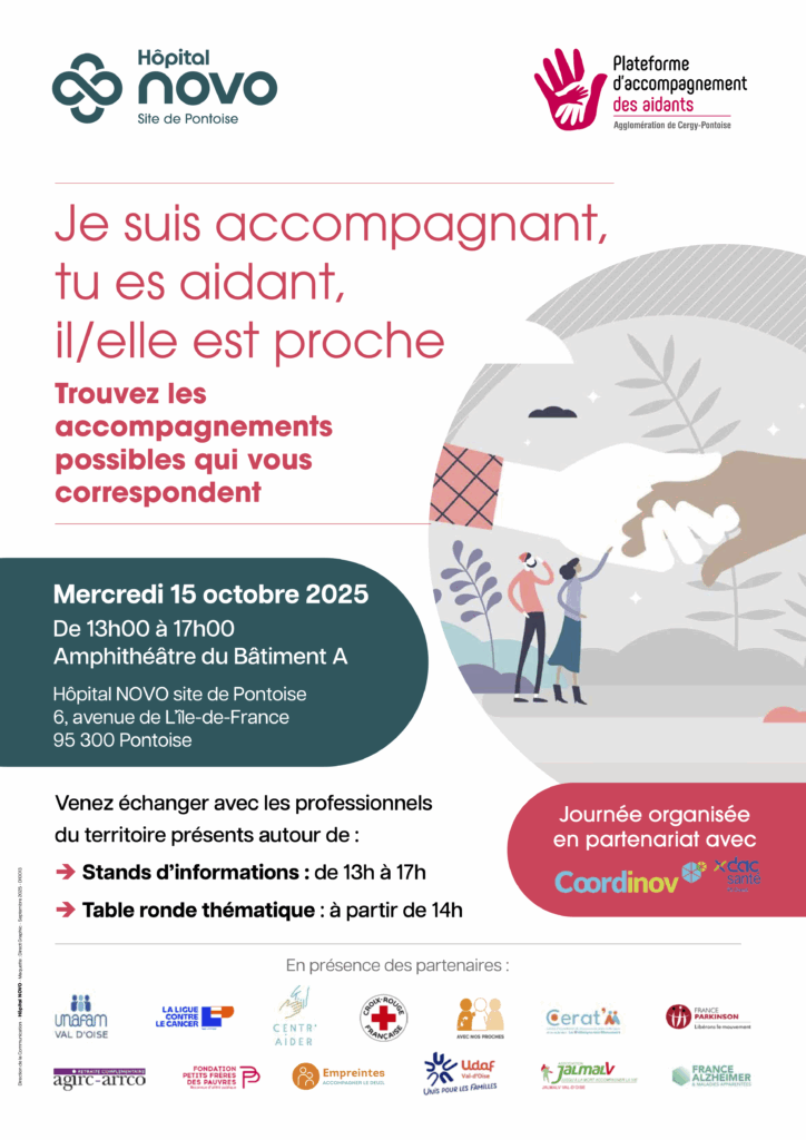 Contact : Réjane FLORCZAK, Coordinatrice Plateforme des aidants et accueil de jour / Hôpital NOVO – Site de Pontoise 6 av. de l’Ile-de-France, CS 90079, 95303 CERGY-PONTOISE Cedex Tél. 01 30 75 49 96